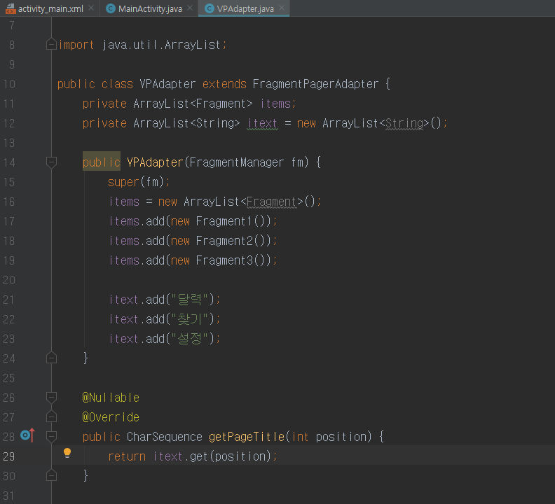안드로이드 뷰페이저, 탭 레이아웃 구현 (1) - 좌우로 밀어서 페이지 전환 (0) | 2020.02.12 |